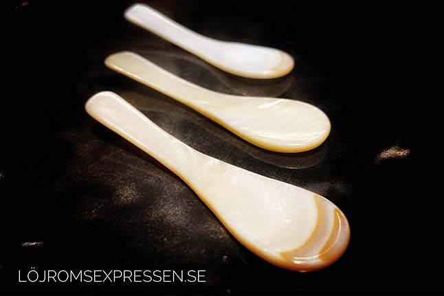 Pärlemorsked för kaviar och löjrom - kanske den viktigaste detaljen för att få till den riktigt lyxiga känslan när man serverar löjrom. En lyxig sked av pärlemo är inte bara "pricken över i:et" när det vankas lyx - den garanterar även att din löjrom inte tar smak av din sked. Kaviar och löjrom tar lätt smak av metall- silverbestick därför är det en klar fördel att använda en sked av Pärlemor när du ska servera din löjrom.